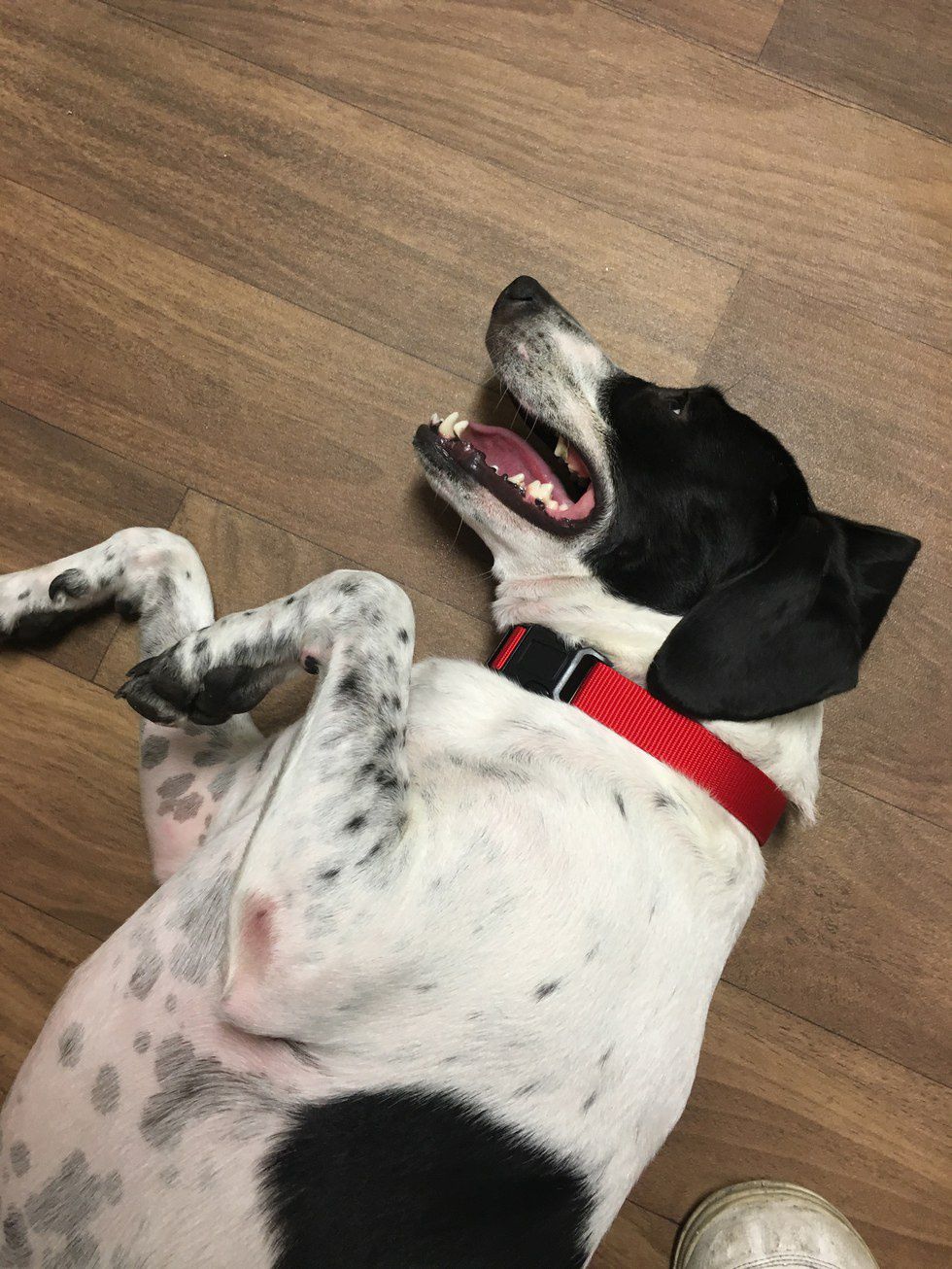 From nowhere appeared this gorgeous black and white Pointer called Arya, that was the right size I was looking for, spayed, almost four years old, and house-trained; it was as if the shelter got her specifically for me. I called a friend and offered him lunch in exchange of taking me to the shelter and so we went, very impulsively, to the shelter. I saw Arya and she didn't seem to connect with me, but I knew she was going to be perfect, just by reading her file.