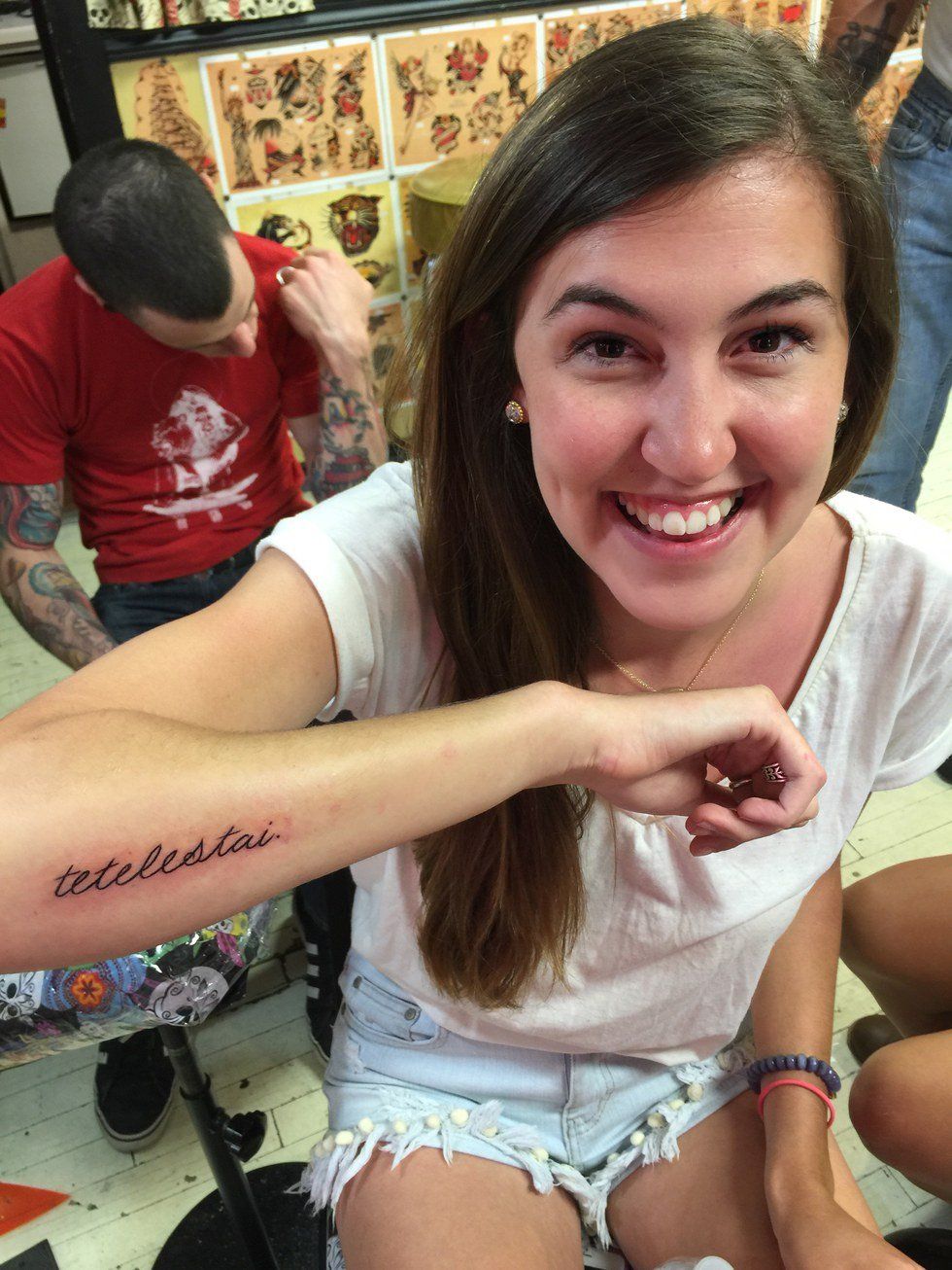 I got this tattoo as a symbol, to myself and to everyone who sees it. It symbolizes the absolute eternal love God has for me, to send His only son to die in my place. I deserved that death and so did you. But God said no. He said I will send my son in your place, to pay for your sins, just so that I can get the chance of knowing you. Isn't that incredible? Tetelestai is the word that shows us that this process has ended and that you now have eternity with God, if you choose it. So choose it. Choose real love, real patience, real kindness. Choose to believe in someone who believes in you. Choose to love a God who comes through with his promises. I promise you it is worth it. Jesus is worth it.