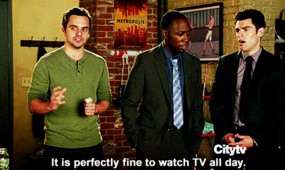 Put down the popcorn and turn your Netflix addiction into a mini workout. We are already strapped for time almost all of the time at school, so why not combine two things you need* to do? You can even turn it into a game, for example, every time they say a medical term in Grey's Anatomy that you don't understand, do 30 seconds of mountain-climbers. Every time Christina scrubs in, 50 jumping jacks. If you're into The Office, try 20 push-ups after each time Jim messes with Dwight. Friends? 10 squats each time the studio audience laughs. You get the picture. Give it a shot.