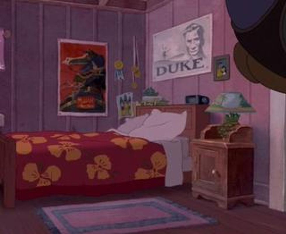 A poster of Mulan hangs on the wall of Lilo's bedroom.
