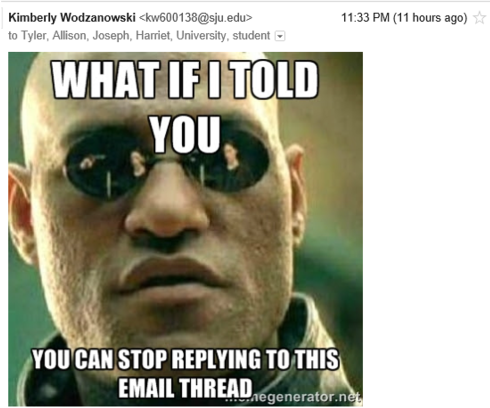 After hundreds of emails were sent until around 9am Wednesday morning, it’s hard to argue that the email chain was not funny at least a little, so here are the best excerpts that you may have missed: