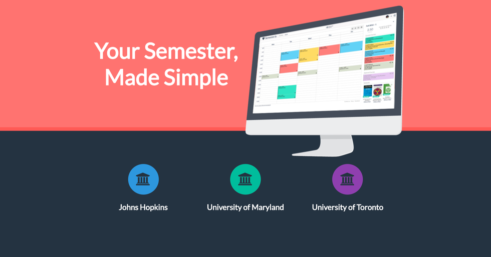 The site is a start-up by college students Noah Presler, Rohan Das and Felix Zhu, which is designed to improve your course scheduling experience. Some of the application's key features are allowing users to compare various schedules with different course selections, seeing which courses their friends are taking, and having easy access to the courses' official and user-given evaluations. Semester.ly is currently available for Johns Hopkins University, University of Maryland and University of Toronto, and includes all of the courses offered at those institutions.
