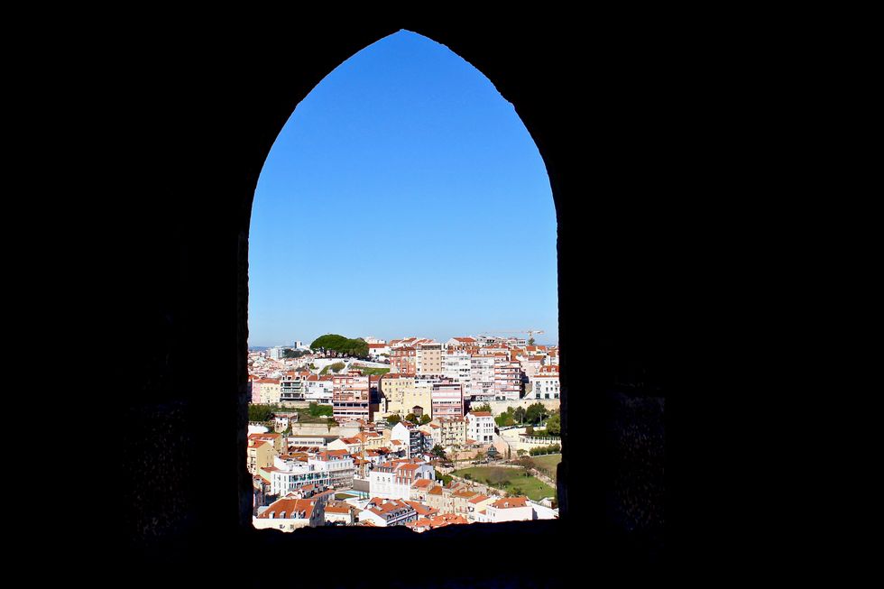 The São Jorge Castle provides the best views of the city of Lisbon! The area is called Largo das Portas do Sol and you can see the Mouraria and Alfama districts of Lisbon and view of the Tagus River from the top!