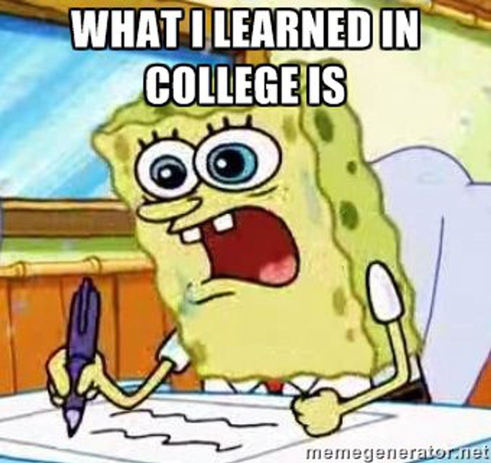 Going to college is a huge step in a young person's life and the transition can be difficult. Luckily Spongebob has always been there for us with important lessons.