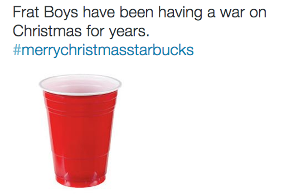 If Christian extremists really care that much about red cups, they should really take it up with frat boys. They’ve been killing Christmas for years now.