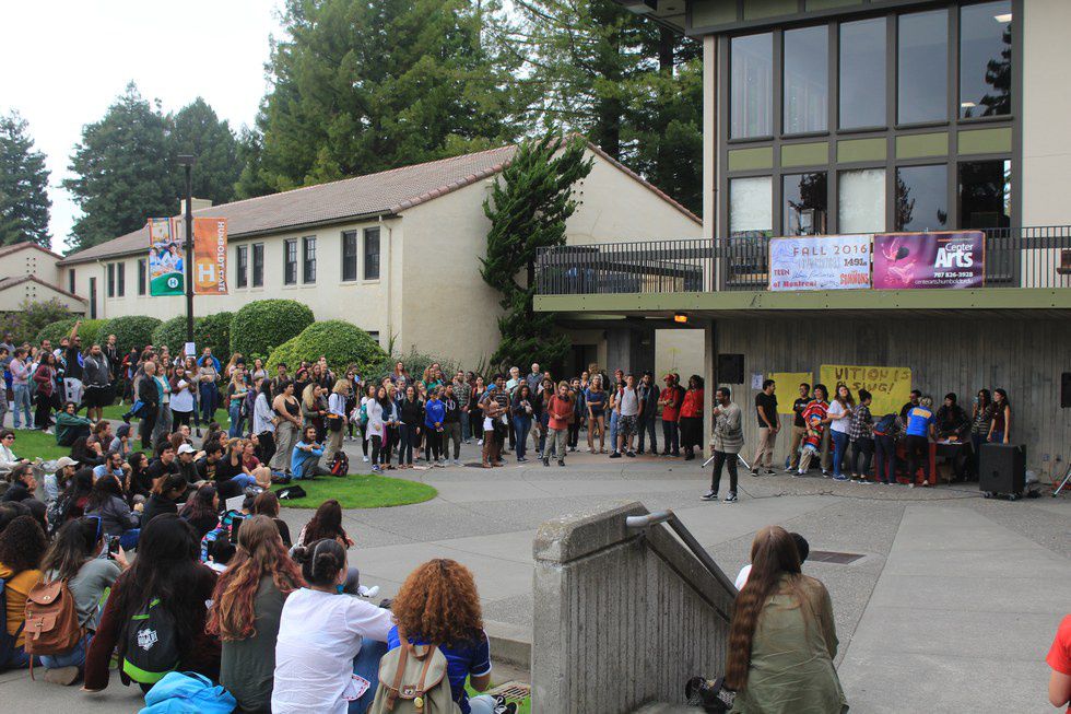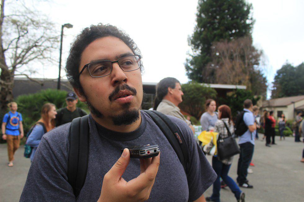 HSU Student Hector Arzate speaking out on the HSU quad. | Tarah Moleski