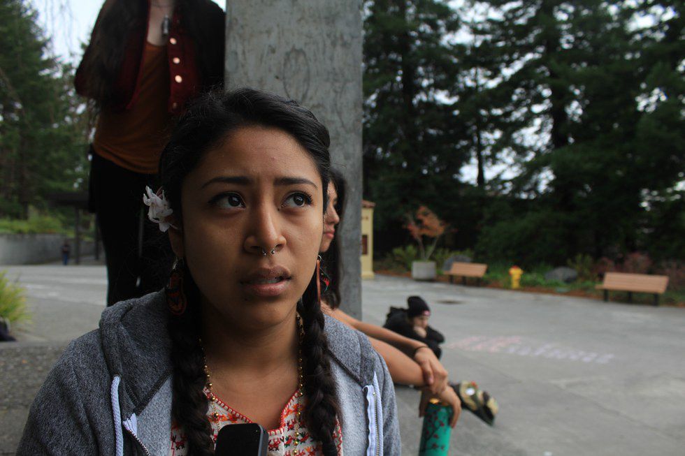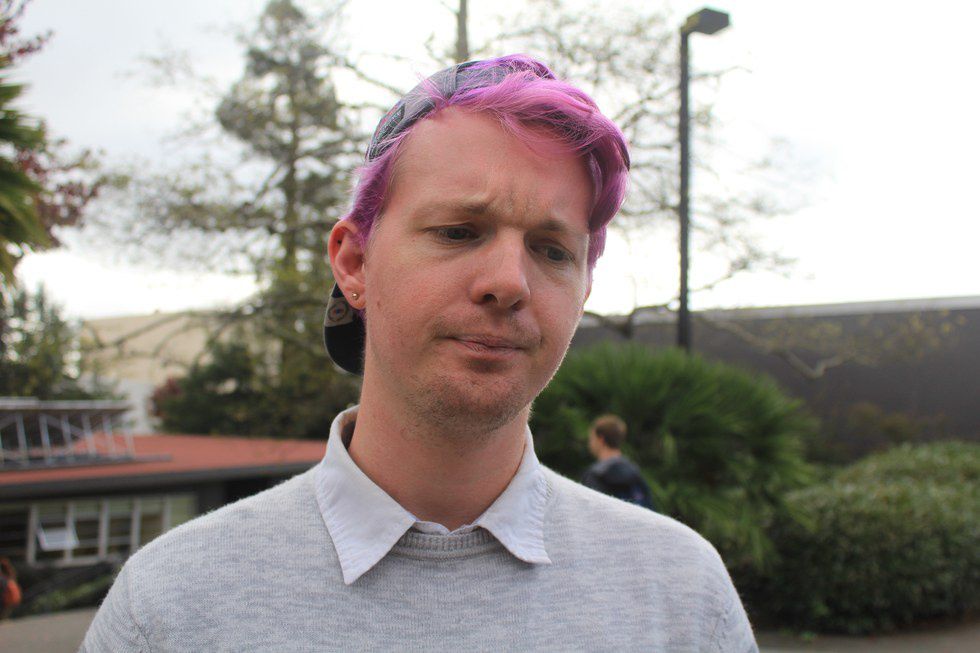 "How do I feel, well I didn’t think he was going to win the electoral college, that was pretty surprising to me, maybe naive, but I'm pretty sketched out. Normally I know racism is sorta the norm here in Humboldt County, maybe not in Arcata we live in kind of a bubble but I usually walk around with a knife and last night I already had it pulled out, I was on campus around 12:30 a.m.-1 a.m., which probably wasn't the smartest idea, but you could hear on different parts of campus people yelling “build that wall, build that wall.” It kind of put me on edge, I already know there are Trump supporters on campus but hearing those statements, was pretty... surreal. I hope this gives a chance for people of color when it comes to inner-cities and what not, ya know the right is malicious, they're all into guns, who owns the most guns, it's white people, they’re all into self-defense. People of color can look towards that avenue not for assaulting other people but defense within their own communities."