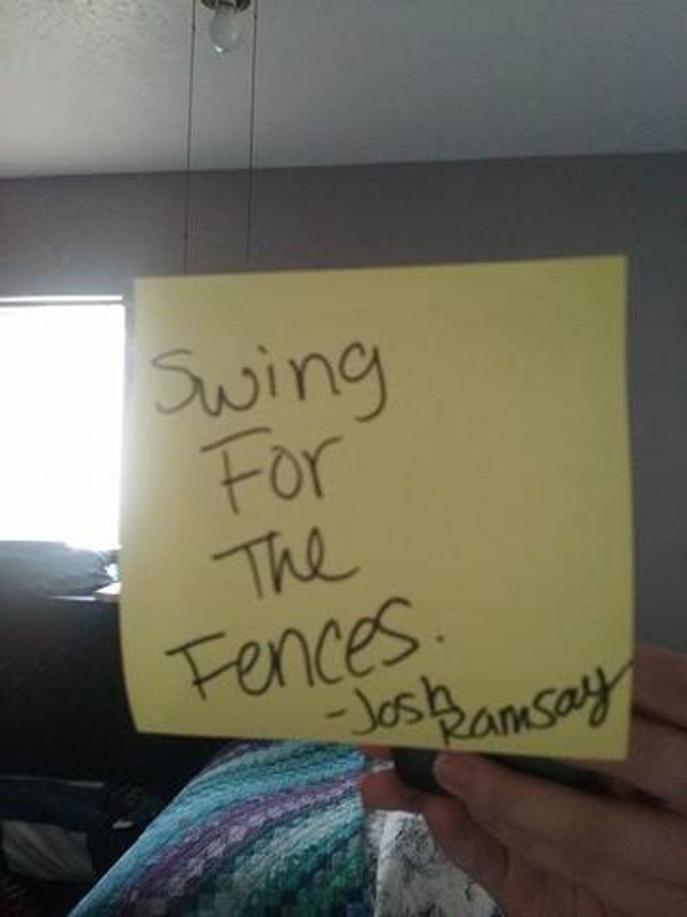 Four simple words that I have heard all my life but never held any meaning to me until I heard them from one of my favorite singers/band. I remembered that they came from a little video of the making of their recent album and I had been in a major slump-emotionally and creatively. But when I heard him say those words about when you want to create something and make it big, then just swing for the fences. They turned me around. They got my creative juices flowing. They made me feel whole again. So when I woke up on Nov. 10, I felt these things all over again. I’m an aspiring writer, in a world that has seemed to turn upside, and I want to make something of myself and my work.