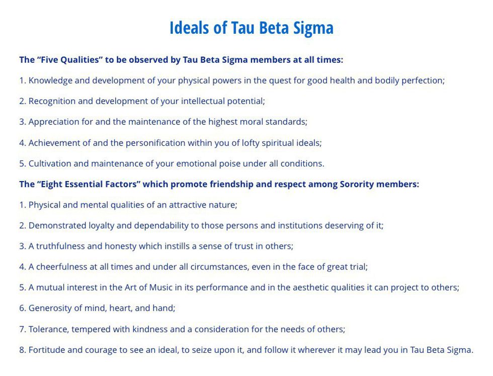 My sophomore year, I joined Tau Beta Sigma, national honorary band sorority. Learning about the five qualities and eight essential factors of every member was very eye opening. Just striving to follow those would make someone a better person in and of itself.