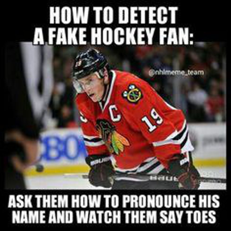 There's nothing greater than watching the replay of a goal made by the Toews-Kane duo and hearing the cheers of fellow fans throughout the sports bar. Nothing is more disappointing than hearing from the table next to you, clearly a Chicago 'bandwagoner', praise the wonderful Jonathan Toews and pronounce it Toes. Shaking your head, you wonder how they felt so comfortable to buy that #19 jersey on their back...