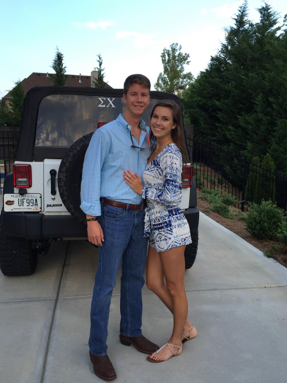 Cody (left, obviously, with his lady friend, Maddie Beeler) is wearing a Ralph Lauren Polo shirt, Ariat boots, Wrangler jeans and Ray Bans with Southern Tide croakies.