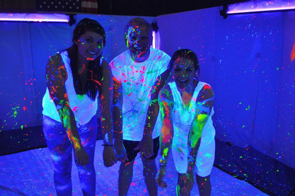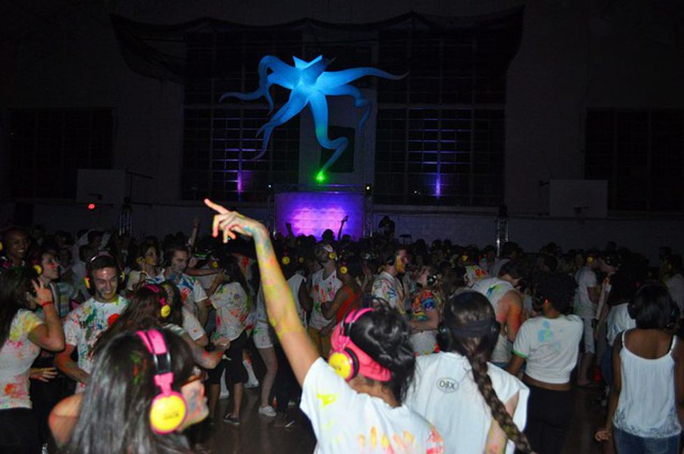You would enter memorial, go off to a little booth to get attacked with florescent paint, grab a pair of headphones, and then head off to the dance floor, where you got to pick which of the two DJs you listened to via the headphones.