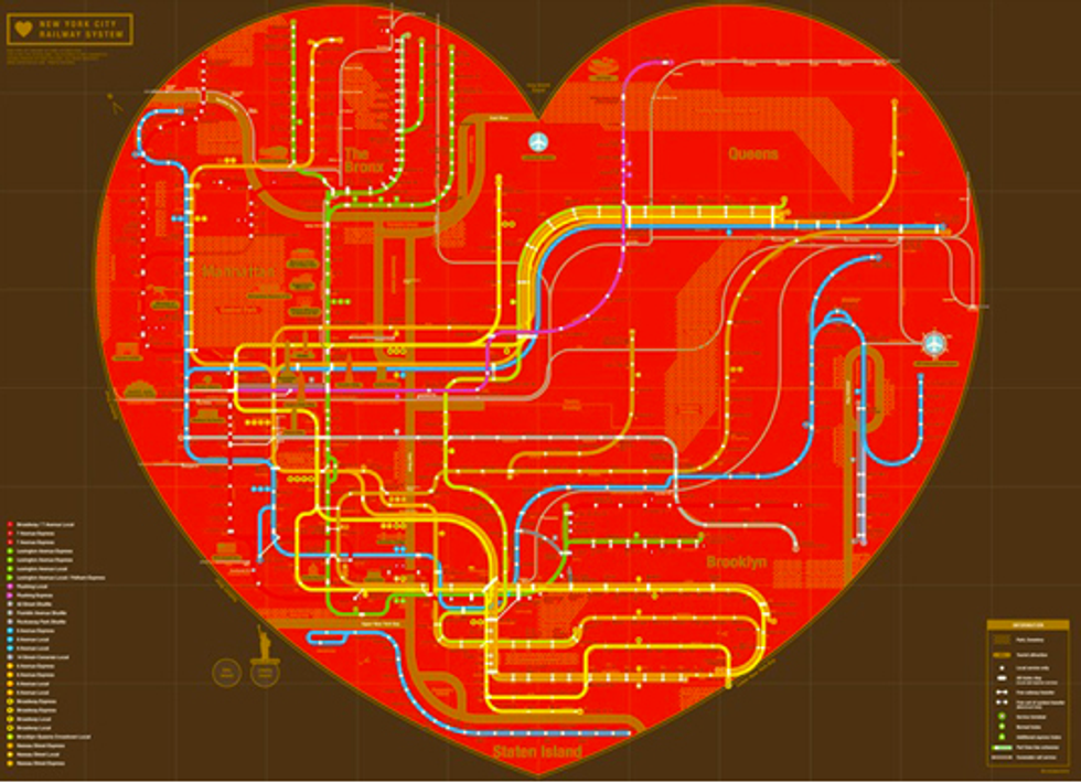 Who doesn't like temporarily falling in love on public transit? Eye contact from across the car with an interestingly attractive stranger... do the rules of courtship apply underground? Then there's seeing someone do something stupid and eye rolling in solidarity with the person next to you. I'm fond of helping tourists or anyone else figure out which trains to take because it keeps me sharp and reminds me that New York is in my blood, the tunnels not unlike my veins bringing blood to my heart.