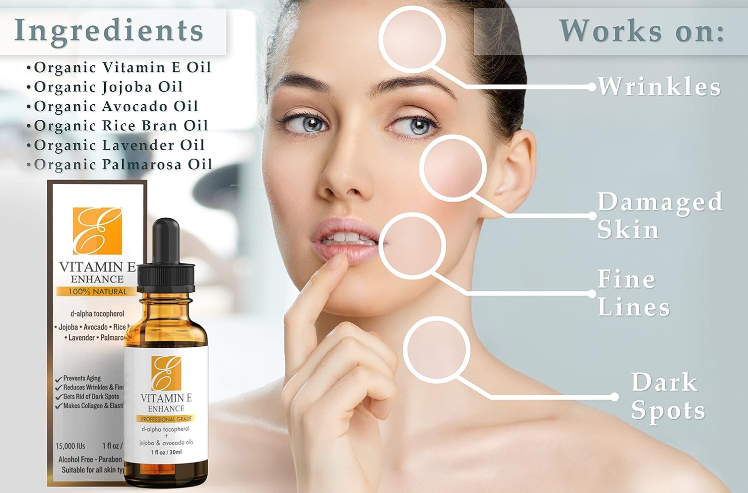I apply Vitamin E oil all over my face, about a nickel sized amount. You may look like a creepy alien after that. Vitamin E oil helps with acne scars and helps eliminate dark spots.