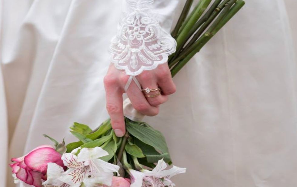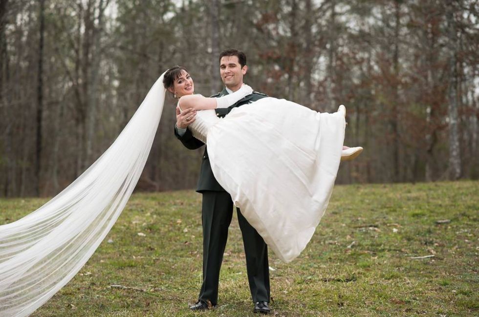 Be creative and have some fun. Also, use the veil if the bride has one!