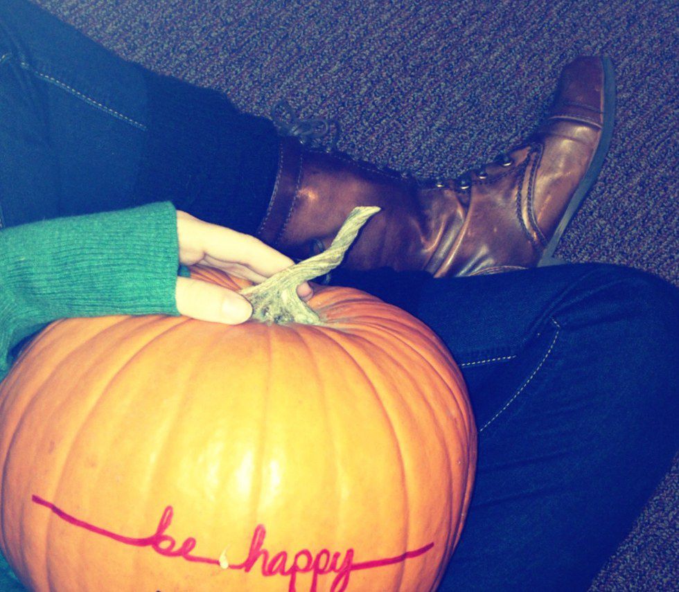 1. Visit a local pumpkin patch and have a pumpkin carving session. (During my freshman year of college, my friends I weren't allowed to carve so we painted ours together instead. Equally as effective.)