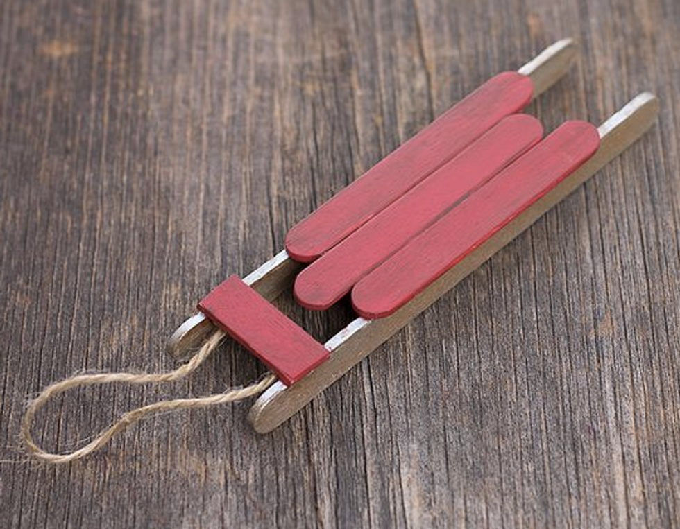 Use popsicle sticks, paint, and glue to make a couple of wooden sleds that the reindeer can land on this winter. Put them on a shelf in a line and just wait for Santa to come in through the chimney in no time!