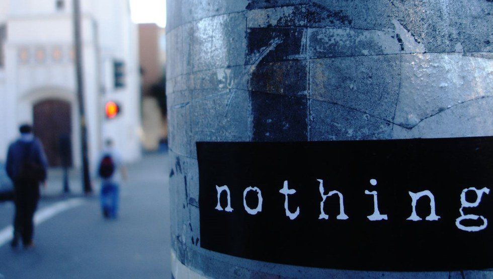 Nothing is the response you have at the end of a long day. "How are you? Are you okay?" "I’m fine. It’s nothing." It might not actually matters if you’re really fine or not, and whether what’s bothering you is actually nothing or not, but what does matter is that you resolve to start again the next day with a new sense of nothing. No matter how you choose to define it.