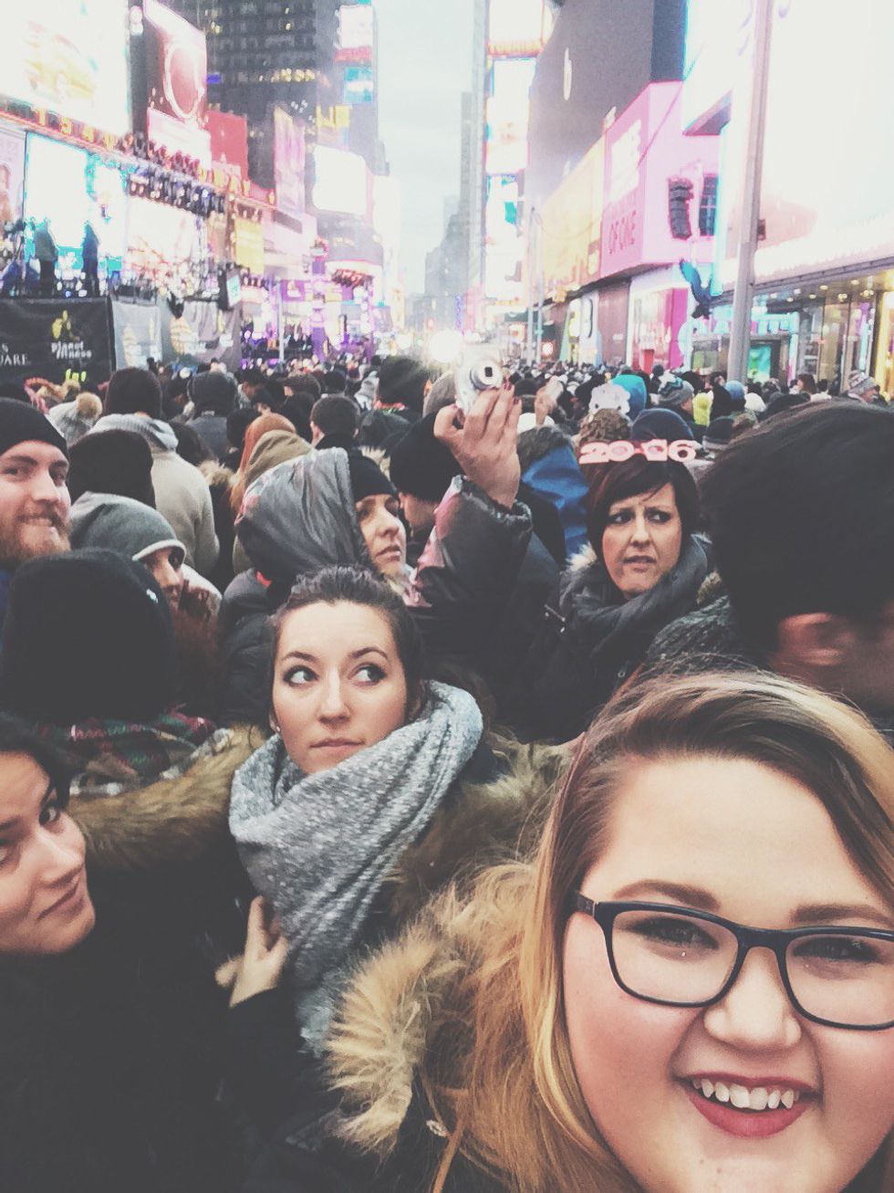 11 hours is a long time. Your feet will hurt. Wear the comfiest shoes you own, but know that this is pretty much unavoidable. You might hate pretty much everyone around you, but it can also be a cool opportunity to meet new friends. I bonded with a group of Italians and three people from Indiana, and we played Charades, a trilingual game of Telephone and ripped up a spare newspaper to make our own confetti to pass the time. My friend Nathan bonded with two New York natives who gave us suggestions on where to eat pizza and also just kept us laughing throughout the night. Try to think more about how cool it is that you are where you are, getting ready to experience the best New Years Eve party in the world, instead of focusing on how uncomfortable you are while standing. Not many people will get to do what you're doing. Not to mention, you get a free concert of some pretty great artists (shoutout to Demi Lovato and Jessie J.)