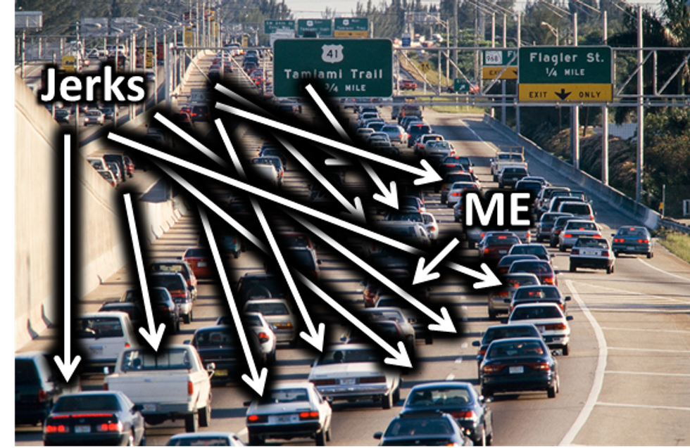 Number two: remain less than two feet from the bumper in front of you at any given moment. This includes scenarios in which you are at a stoplight, in a parallel parking spot, when the person in front of you is going only exactly the speed limit, and on the highway during rush hour. Other drivers need a constant reminder that you left your house late and are in more of a hurry than they are, and because no self-respecting jerk ever showed up on time, you must also always be late.