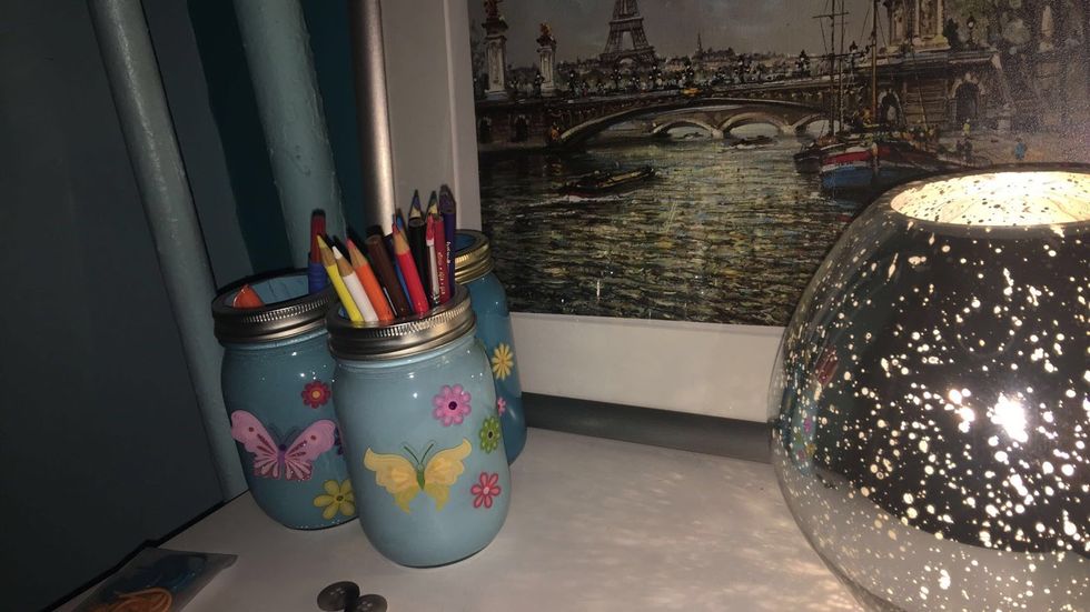 I love arts and crafts. You can turn everyday things around the house into beautiful masterpieces. Not only is it fun but you can transform things you no longer use into new useful items. When I was a freshman, I was most excited about decorating my dorm room- I must have visited Michaels a hundred times. Whether it be making creative new pieces for your dorm room/bedroom, office organization, or maybe just a fun family craft project there are limitless options to explore. If you're looking for some projects to try, you can look on websites like Pinterest that give you the items you’ll need and give you the steps to get the end result you would like. You can even go online and type in what you would like to make and follow it with DIY (do it yourself). I will share a picture of a project I did with mason jars, paint, and some 3D stickers to give you an idea. Don’t worry about messing up or if you can pull it off, The best part about arts and crafts is that there are no mistakes, and something you may think you did wrong might be the best part of your project. So give it a try and have fun!