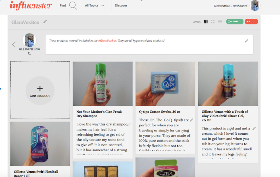 Influenster has a "list" feature on their website, and they love when you use it. Obviously, they are lists of products and can be listed under anything. For example, an individual may label their list "5 Products You Will Need This Summer!" and list products such as sunscreen, sunglasses, a specific hat, etc. Influenster even asks those who receives VoxBoxes to make a list of what was included in the VoxBox. It is a handy tool for anyone looking for specific items for a certain event or occasion. It's simple to use and it can be fun for those who love trying new products.