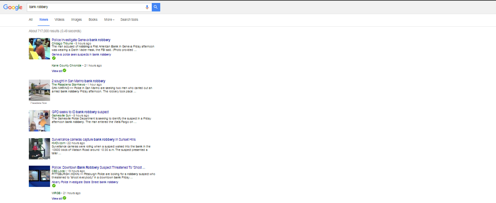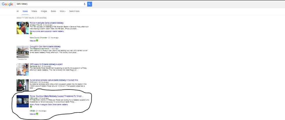 Now that we've "Built 'Pon Thoughts", we can move along into the last step, which is creating a plot outline. A bit boring compared to the name of the previous step, but so it goes. Now, a good way to get a good plot outline going is to refer to the news. I Googled "Bank robbery" and this is what came up-