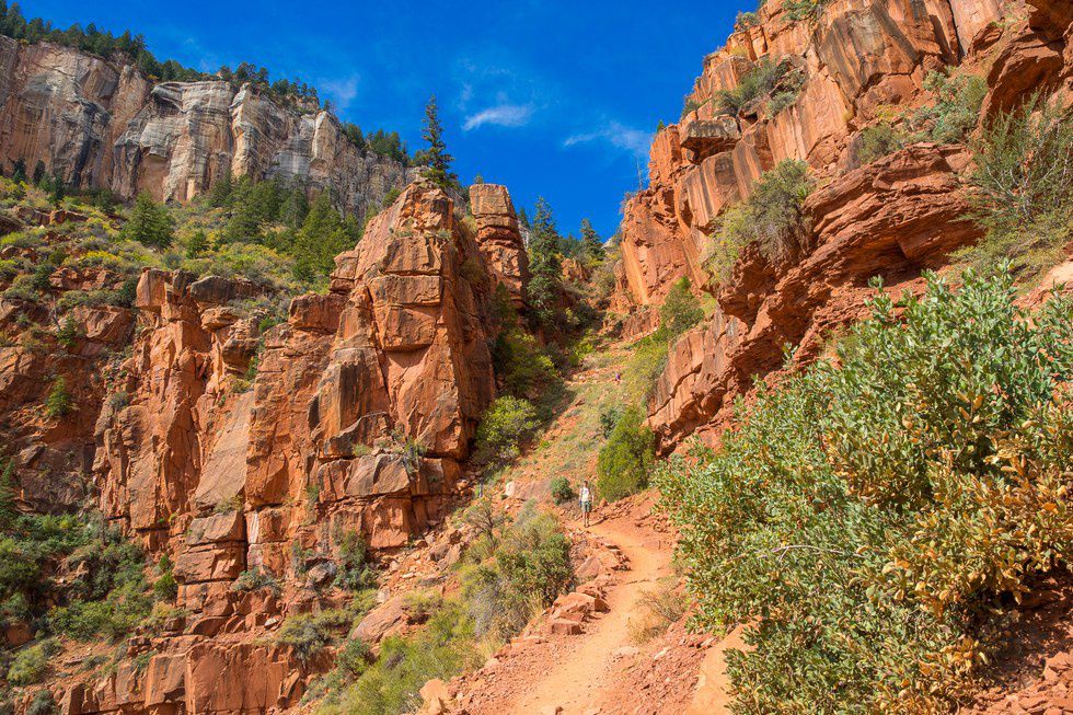 Second, you can hike down the North Kaibab Trail (14 miles), and hike up the Bright Angel Trail (9.5 miles). This hike contains two trails with water, so you can always refill your water bottles. Also, these trails are less steep than the South Kaibab. However, there are a few costs to this journey, as well. First, you will need to take the trans canyon shuttle bus, which costs $90 one-way, and takes four-and-a-half hours, to return to your motor vehicle. Second, the North Kaibab Trail is double the length of the South Kaibab Trail. However, the North Rim offers a completely different view of the Grand Canyon. It has a diverse, green ecosystem that is unknown to the South Rim. When you complete this voyage, you will have seen the entire Grand Canyon at large, which only 1% of Grand Canyon visitors complete.