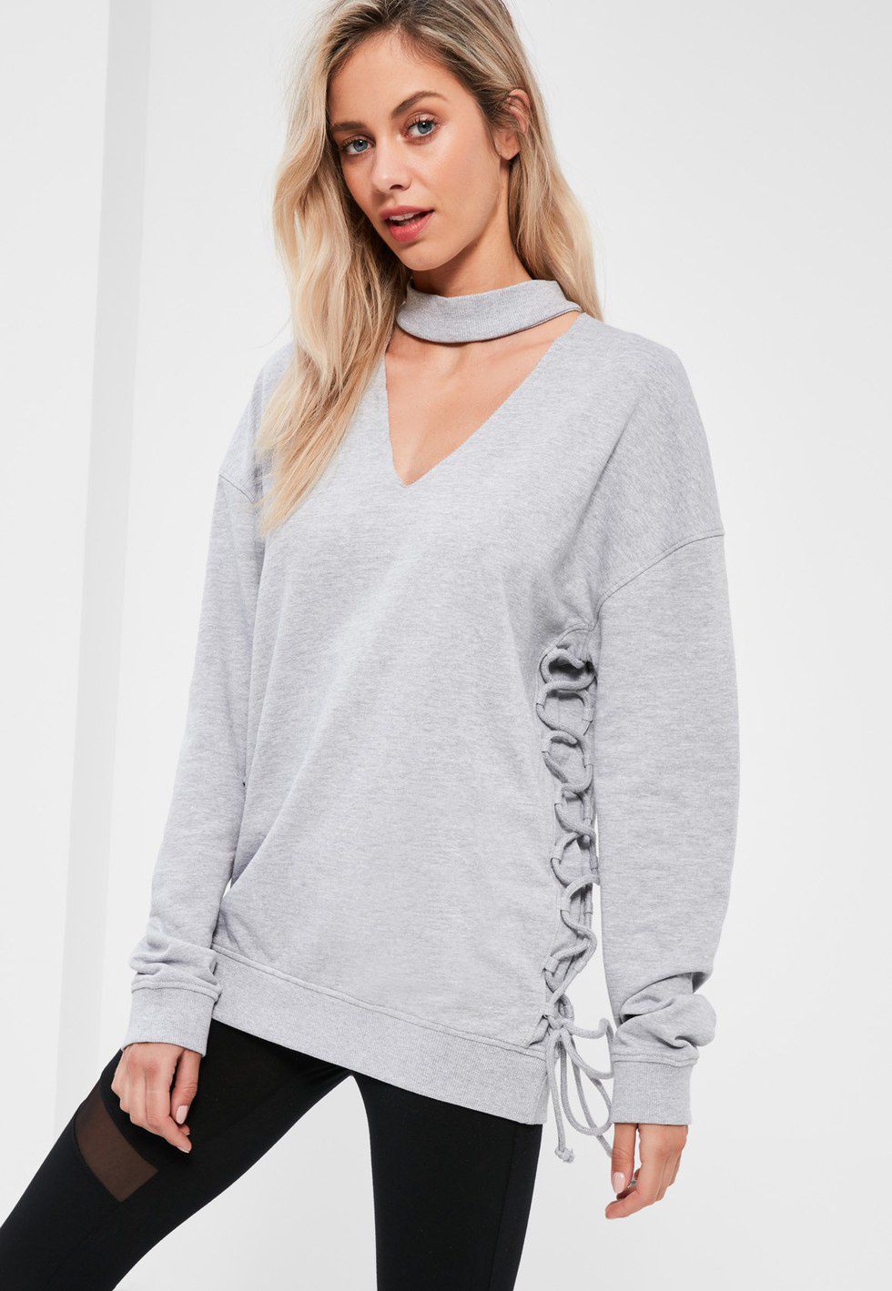 Misguided, Grey Choker Neck Sweatshirt $39.60