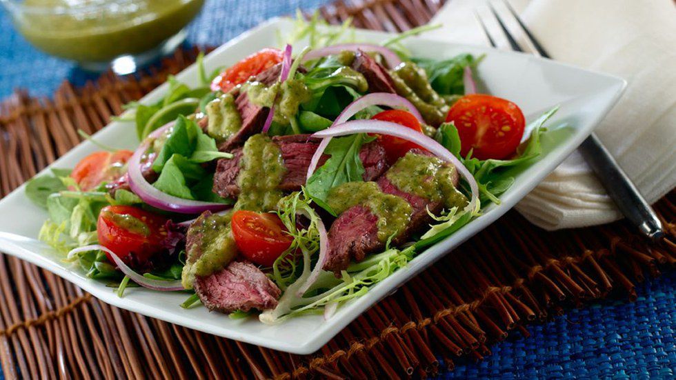 This probably goes with out saying, but the temperature of all the ingredients really matters. Putting hot steak strips on cold lettuce is going to leave you with wilted, unappetizing mess. Colder is always better.Happy Salading!