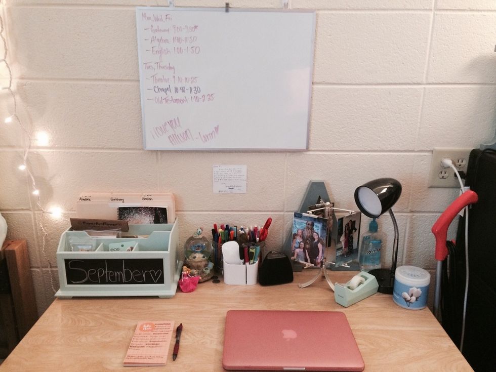 The first thing I do when I wake up in the morning is make my bed. I know this may seem like a huge hassle; however, it is an easy way to make a huge difference in how clean your dorm looks. Also, people will actually be able to see what the cute bed spread you bought looks like.