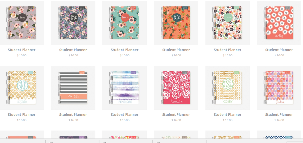 My favorite place to buy a planner is http://plum-paper.myshopify.com/. Their base price for a student planner is $16.00 for a six month planner with no add-ons. The planner does automatically come with the option to put your name and the option of your monogram or picture. Plum Paper also give you 96 different cover options.