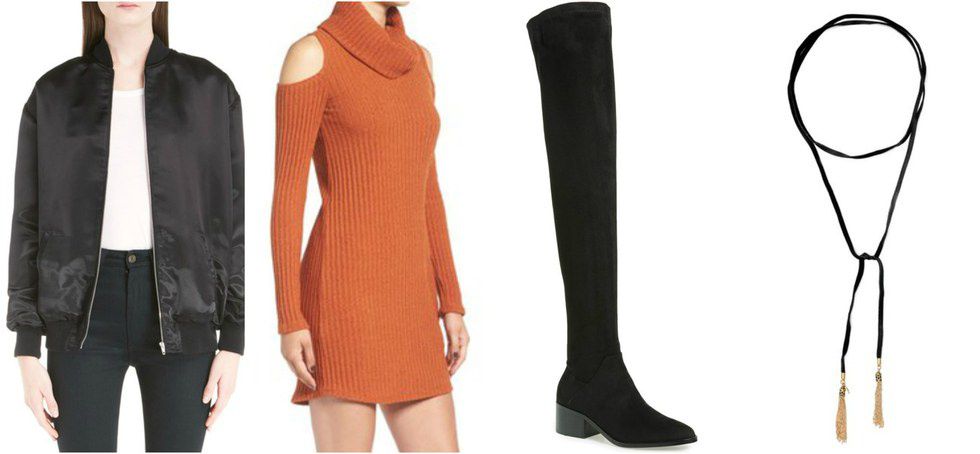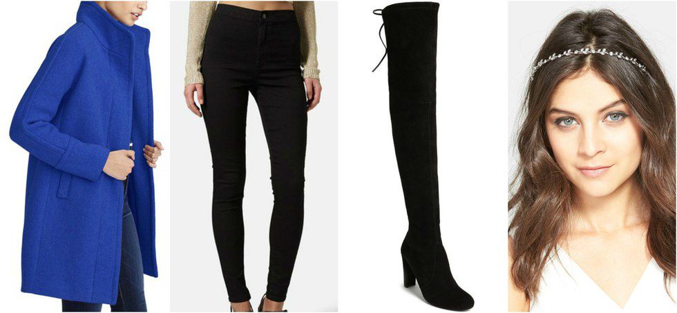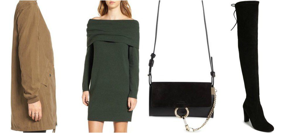 When you travel home for the holiday, make sure to have some adorable and comfy options to wear. This sweater dress and over sized jacket are perfect for a drink or dinner with friends. The holiday season is always a cloudy time of year so don't be afraid to try out some different colors in your look to brighten it up.