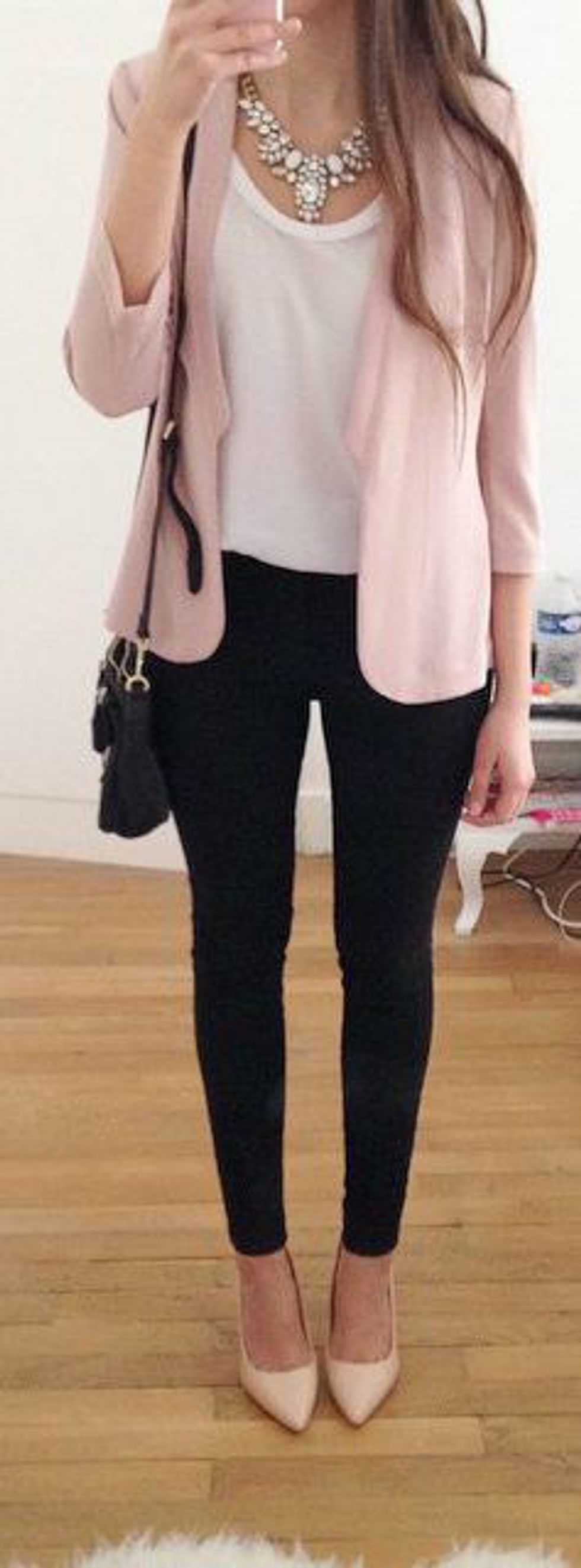 Start out with a pair of jeans. It doesn’t matter the color, jeans are already more presentable than yoga pants or sweats. Pair it with a nicer shirt, it doesn’t have to be too fancy, just something other than a t-shirt. Layer it with a jacket or cardigan and then accessories can do the rest.