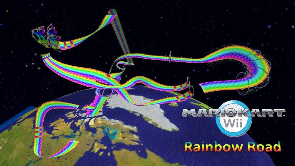 Okay, so if you are anything like me, Rainbow Road is the bane of your existence, especially when played on the wii because, let's be real, those controllers are more sensitive than a tween in junior high school. Pair that with Rainbow Road, and you are basically guaranteed to fall off.