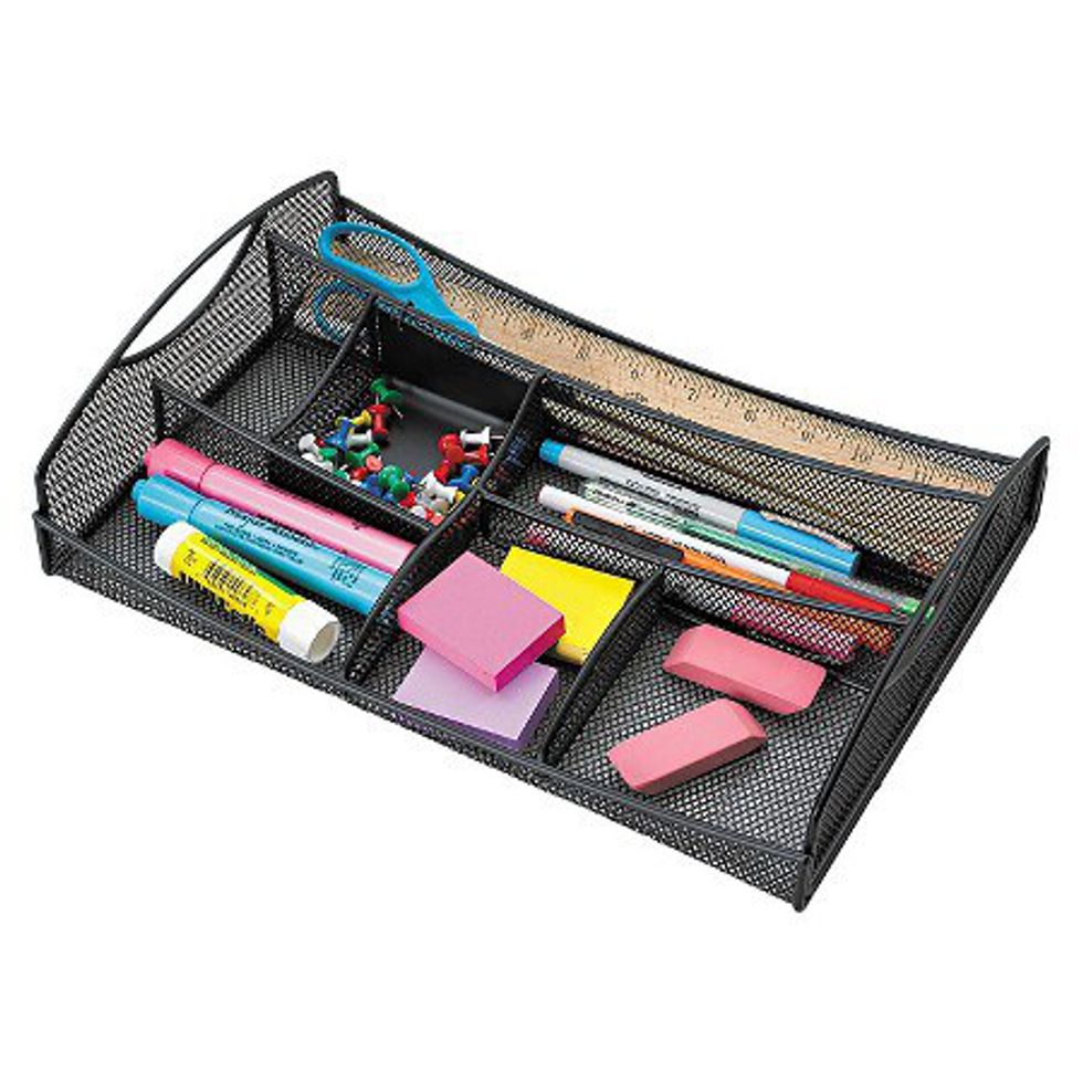 I don’t know about other people but I can’t focus if my desk is a mess. That’s why organization is so important. Focus on the top of your desk first and decide what you really need to have on top of it, such as writing utensils, your phone, a stapler, tape, a pair of scissors, your laptop/computer if you’re going to need it, and your to-do list or agenda. These items will vary depending on what you know you're going to need at hand. Depending on the size of your desk, you can definitely make adjustments so that you have the most important things on top in addition to adequate workspace. The smaller things such as paper clips, thumb tacks, rubber bands, and other office supplies can be stored in a drawer organizer like the one shown below: