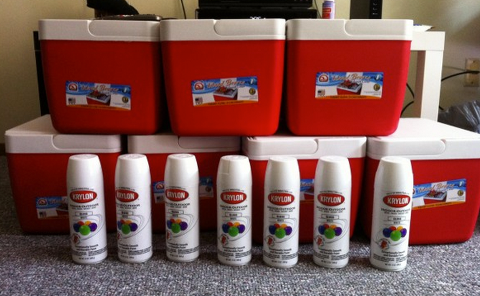 It’s been a few days and you’ve already downed four bottles wine while painting this thing, and you’re starting to get antsy. And then it happens. Your roommate walks in and tips over the remains of your last bottle of white paint, and you lose it. This is the least-anticipated and most-dreaded stage of the cooler process. Be aware that you will have at least one meltdown, and the only way it can be fixed is with a fifth bottle of wine and a long nap.