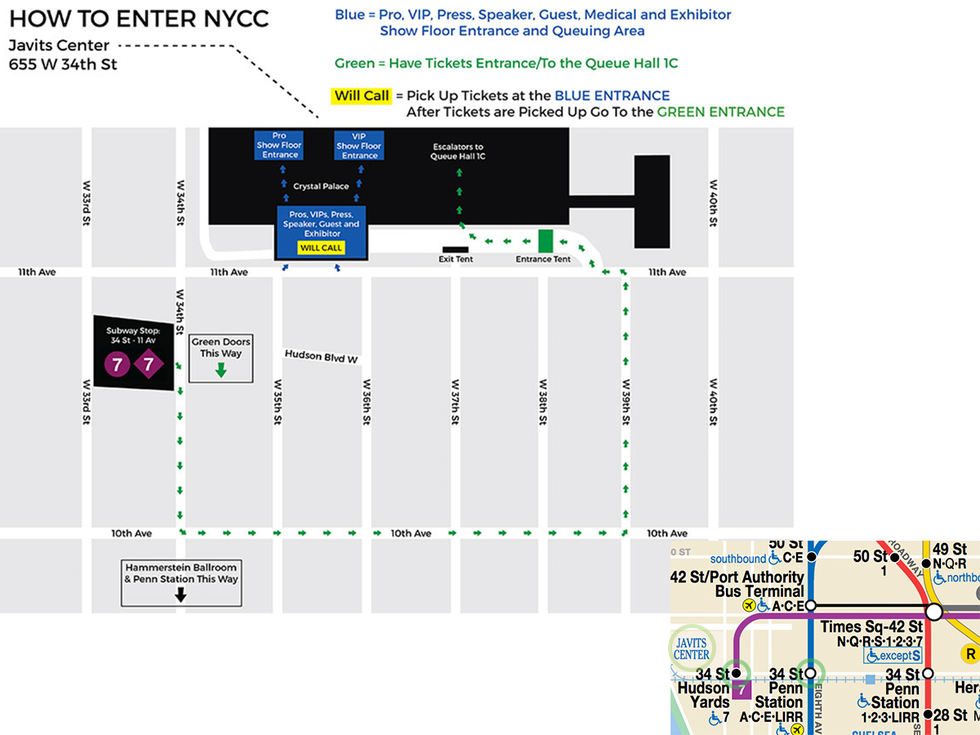 The Javits Center is spacious, but at the same time, crowded as hell. It will be easy to get lost. Make sure you check out the map and floors of the whole building, so it will be easier to navigate a bit. Here are a bunch of maps: Javits Overview. The Show Floor/The Block. The Artist Alley. Area Map.