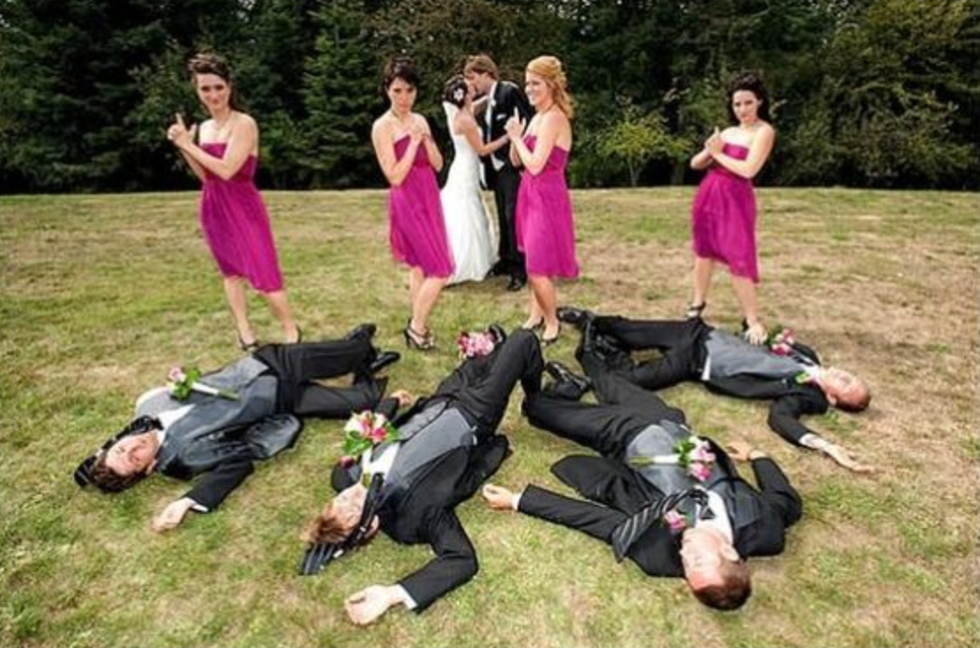 My advice would be to only take pictures that your bridesmaids and groomsmen will cringe at the thought of, but go along with because they have to.