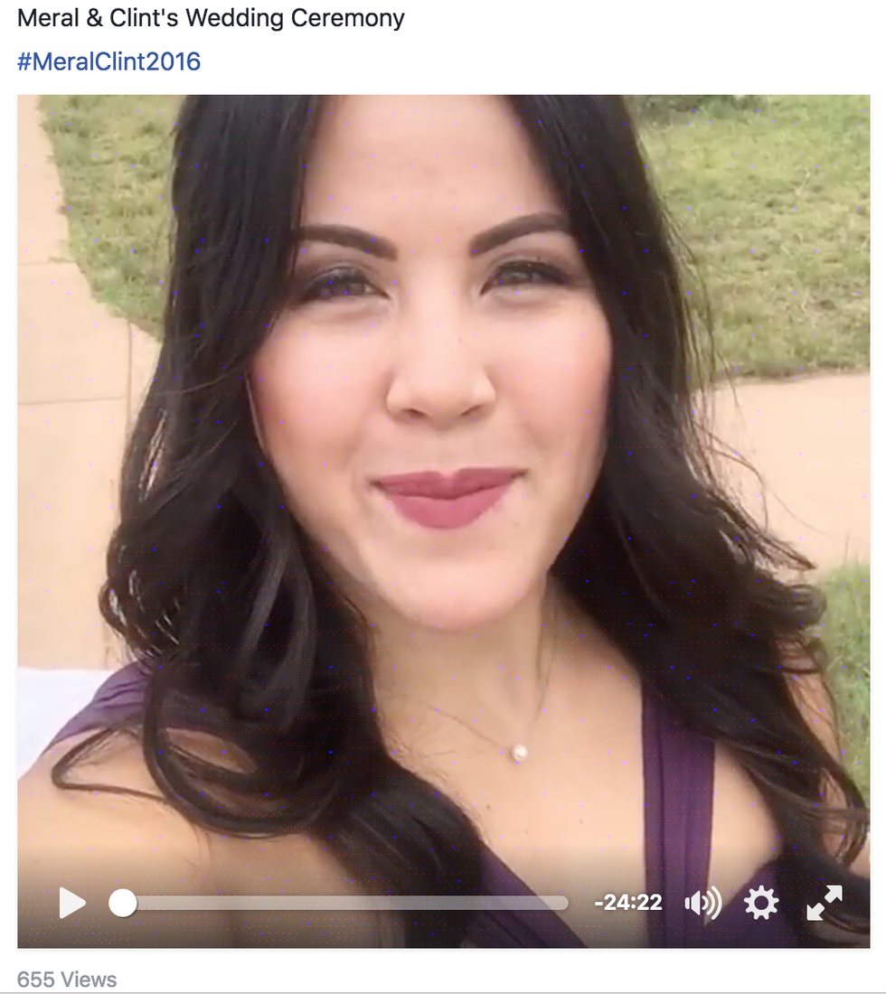My sister had around 150 guests present for the wedding. It was such a beautiful ceremony and reception, so I'm so happy we were able to share it with the friends and family that were not able to attend in person. We don't have any extended family that live in Colorado so being able to share the big day with those far away was so cool. Also, the entire family on my dad's side live in Istanbul, Turkey. We got to share the wedding with them in real time thanks to technology! Watching an event live has such a different feel to it than watching it after the fact. The day before the wedding, I created a Facebook event and invited all of our close friends and family members that weren't going to be able to make it. The day of the wedding, I made sure to designate one person who wasn't a part of the wedding party to do the live streaming. My cousin Subie was the cameraman. I opened Facebook Live, added the title "Meral & Clint's wedding," hit broadcast, then handed it off to Subie. Normally, I would have happily recorded but since I was going to be standing up at the alter, I needed some help. Our family members were so thrilled to be able to virtually join us. I loved going back later and reading all of the comments that came in during the broadcast. My sister and father were even able to interact and say hello to some of the guests on Facebook Live before he walked her down the aisle. Here's a screenshot of me introducing my Facebook friends to the cameraman for the wedding ceremony live stream: