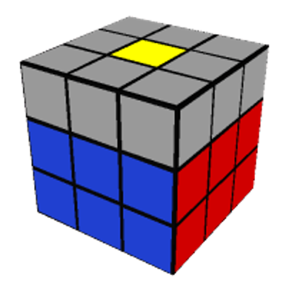 The next step, “F,” stands for “F2L,” or “First Two Layers.” This is the most complicated step, and involves solving the four white corners in conjunction with the entire second layer. When this step is done, only the top layer of the cube will remain unsolved, and will look like the picture above. Believe it or not, the best way to learn this step is to simply try solving it intuitively without memorizing algorithms. This step can be solved simply by playing around with the cube and learning which moves affect what pieces (this is how the world’s fastest speedcubers learned to solve this step). If you’re an absolute beginner though, you may want to check out an online tutorial to help get you started -- I recommend “Badmephisto” and his YouTube videos, which helped me learn to solve this step.