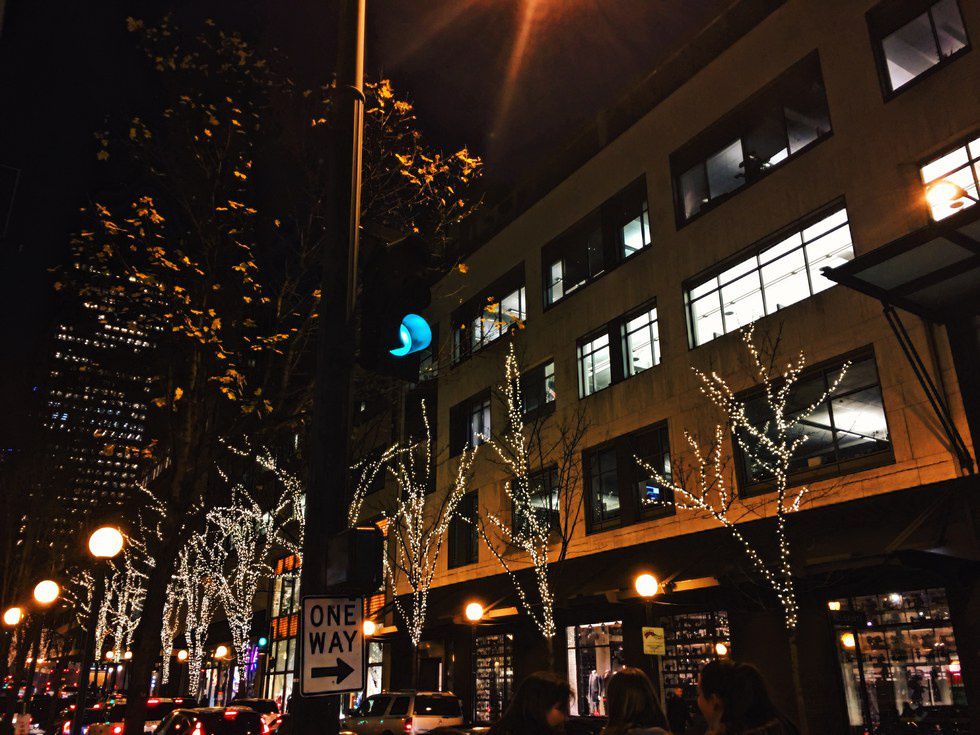 As you continue walking the streets, you take in the little things about this city at night. The huge star outside of the Macy's on 300 Pine Street or the huge line of people waiting to get their picture with Santa at Nordstrom on 500 Pine.