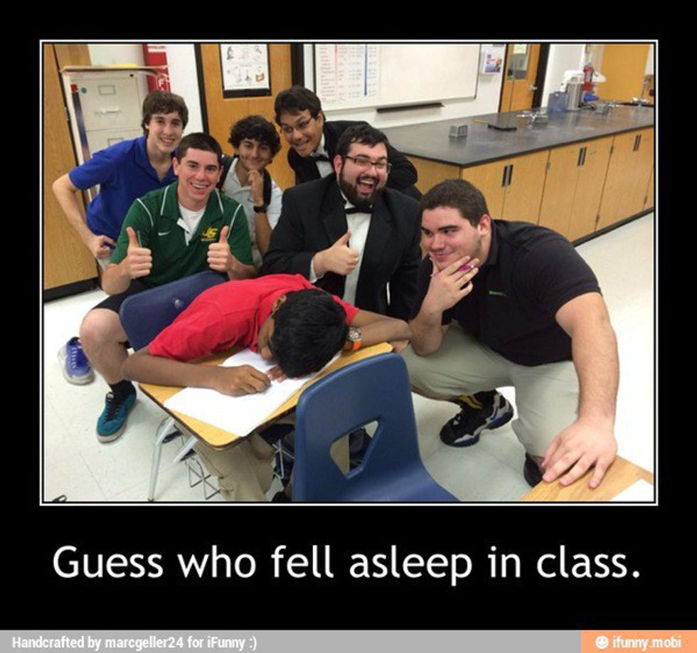 Are you in a small class room? Is it a lecture hall? Are you in the back or the front of the room? Once these questions are answered you can begin deciding if napping is a risk you want to forgo. It is much easier to sleep in class in a lecture hall setting. Being in the front of a small classroom would not be the best spot to undertake sleep and it would not be recommended, but if you are an adrenaline-junkie than this might be the spot for you.