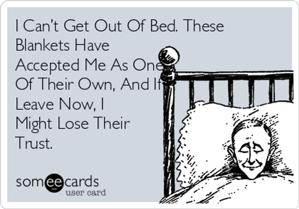In case you forgot, sleep is a much needed aspect to staying healthy and performing well in your classes. So if this means skipping that last cramming session or failing to complete the last few math problems in a set, do it. After all, do you hear that? That's the sweet siren song of the bed calling your name.