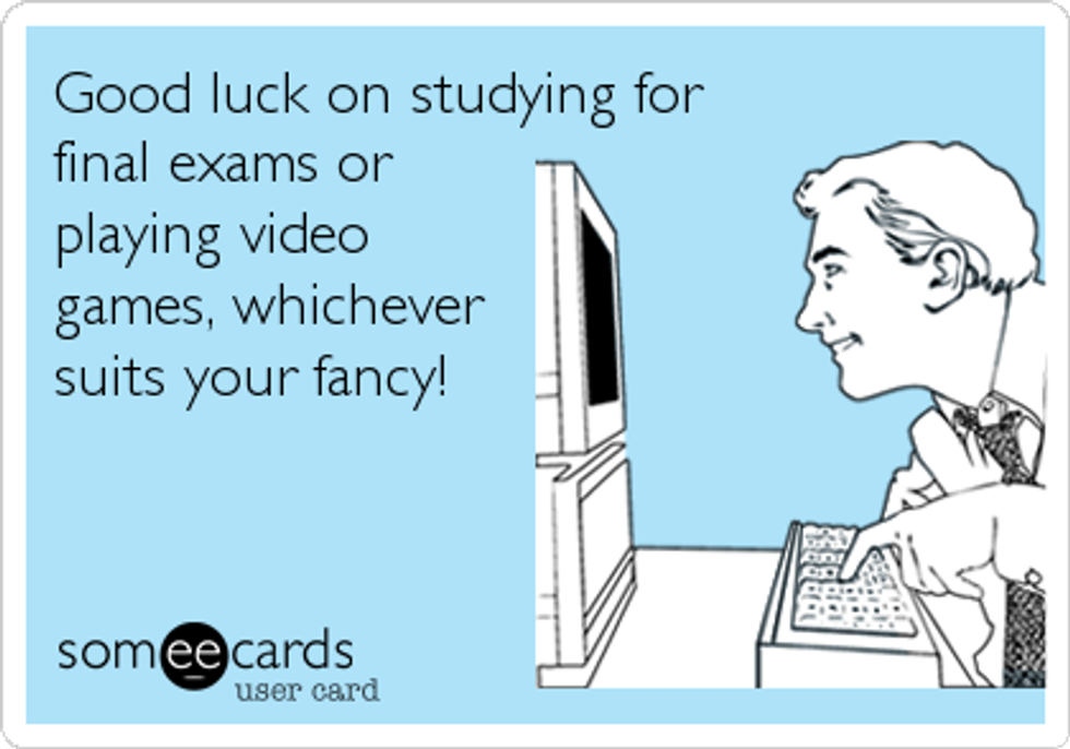 I was only in 12 credit hours this semester and only had 3 exams. But, oh man, was it stressful. Everyone realizes that they’re so close to the end of the semester that everything hits the fan. You’ll see people will a huge stack of books in the library “studying” aka sleeping. You won’t know what to do with yourself. Often times you’ll just realize that you’ve been staring into space for the past 3 hours. Just remember despite all that happens, you just need to remember what is important. Sometimes that means that you sit and watch your friend play video games for three hours just to get away from your roommate.
