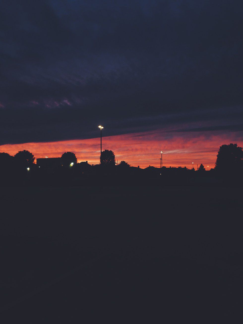 I took this picture in my school parking lot. I used the AE/AF Lock to focus on the sunset only and brought down the exposure to make the colors in the sky stand out more.