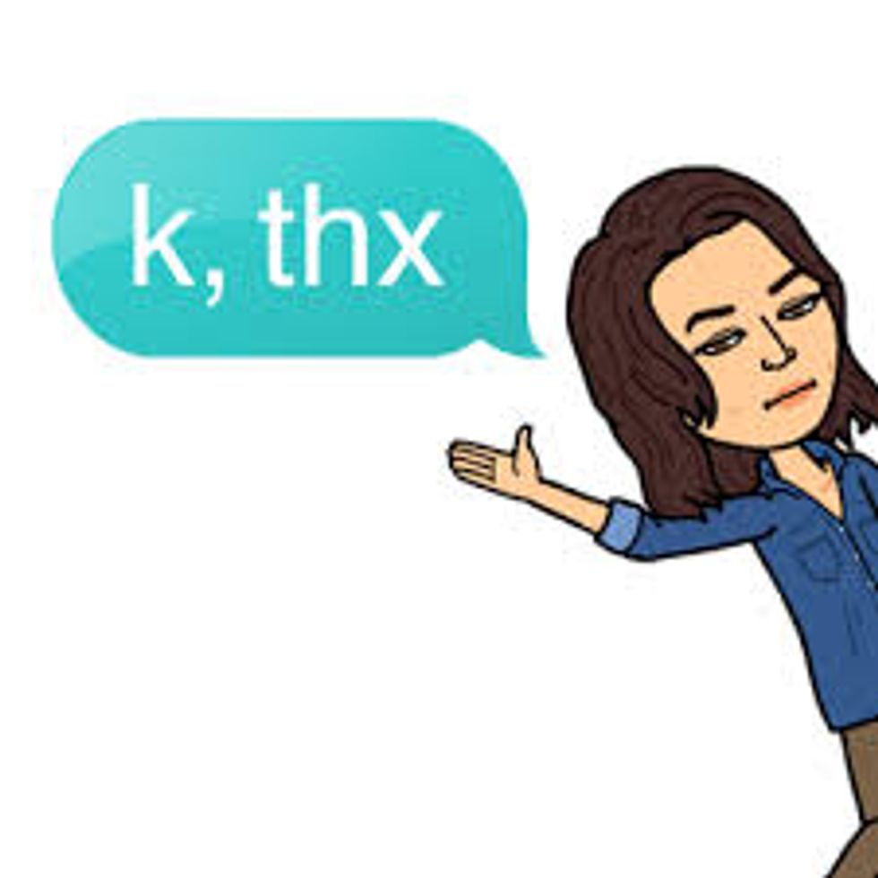 Instead of just receiving a text that simply says “k, thx”, this Bitmoji allows a person to see the annoyed emotion behind what might be a not so sincere thank you. The text “k, thx” could also be just a very quick way of sending a sincere text message, but this Bitmoji gets true intentions across.