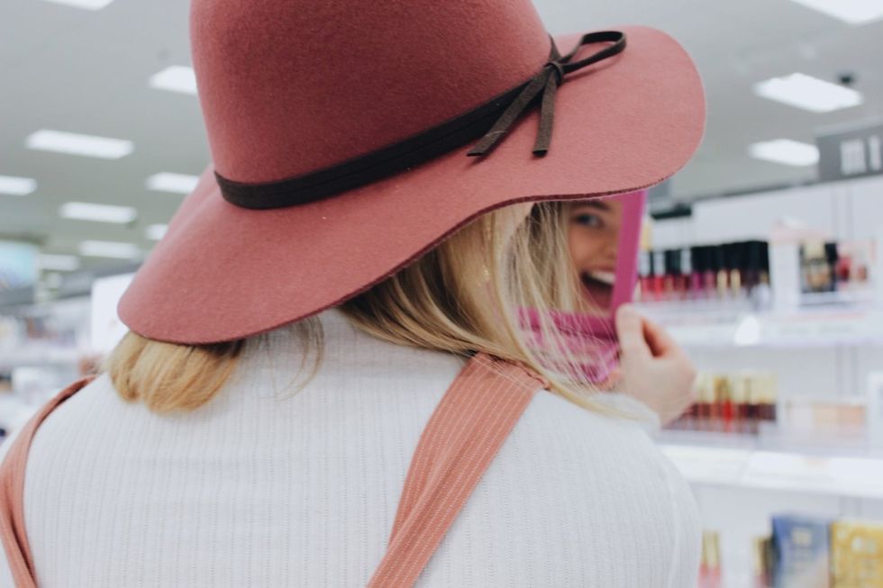 hats are one of my favorite accessories, this cute pink one can be bought at target and can really be worn with so many outfits