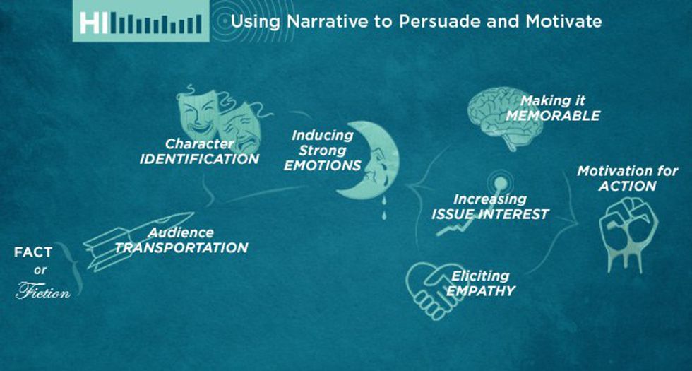 The Harmony Institute supported a study about how narrative is used to persuade and motivate. I believe that this also applies to how the media controlled the coverage around the elections. Whether or not Trump is a true republican, or Hillary a true Democrat, the audience was transported to identify both of those characters in the developing narratives as binary to each other. Trump, deciding to take a radical stance on many issues he didn’t have a problem with in the past, became the villain of the story, inducing strong emotions from the American public.