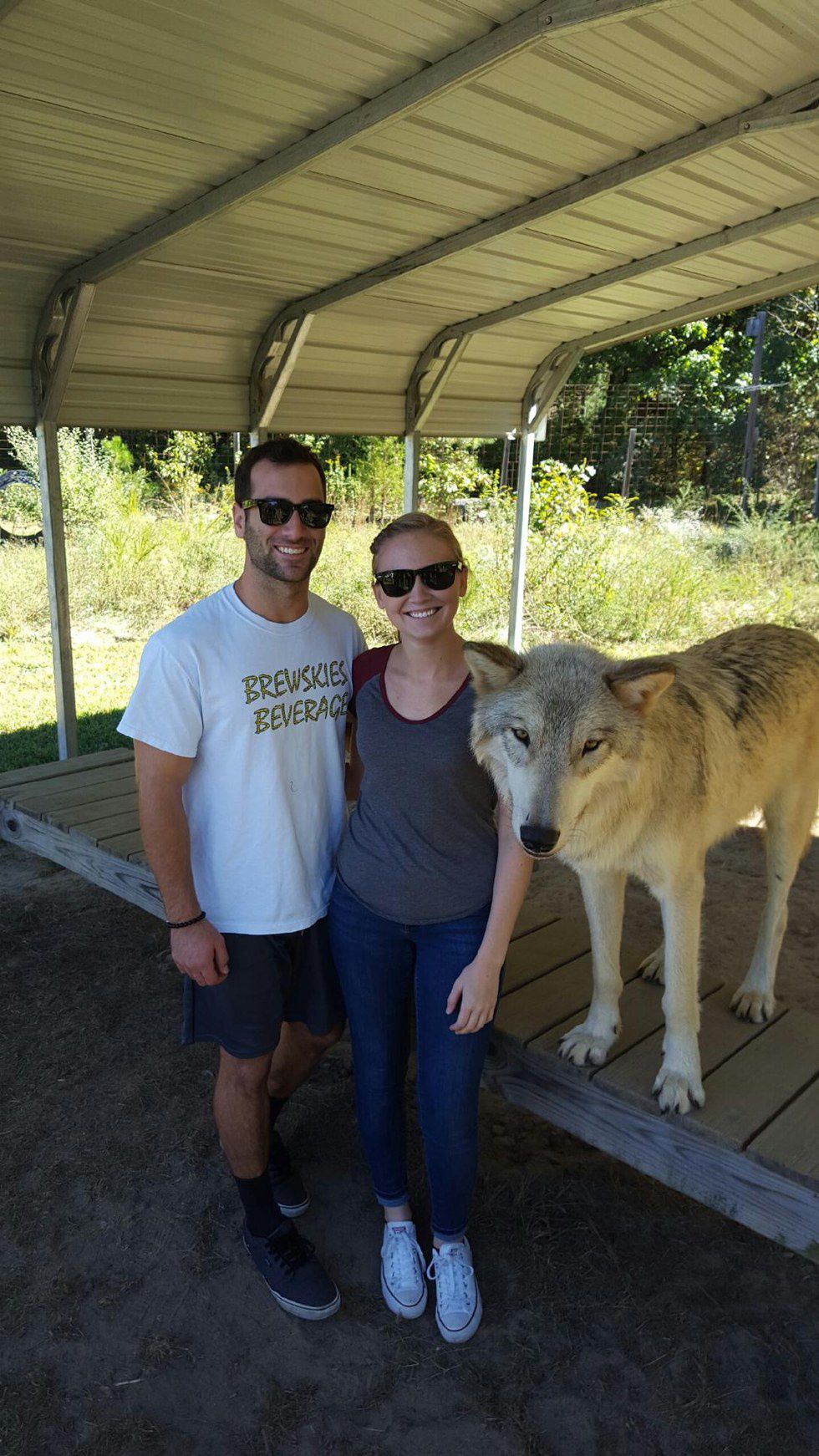Once your tour guide has given you all the information about the wolfdogs, they will then allow you to take as many pictures as you would like with the wolfdogs. There are many volunteers around that are more than willing to take a photo for you, and the wolfdogs are very willing to pose with you as well! The volunteers will get the wolfdogs to stand up on a platform for you, you can hand one of them your cell phone or camera, and this is where you can pose for your picture. They highly recommend that you share all of your pictures on social media and to their Facebook page because they love hearing about everyone's experiences!